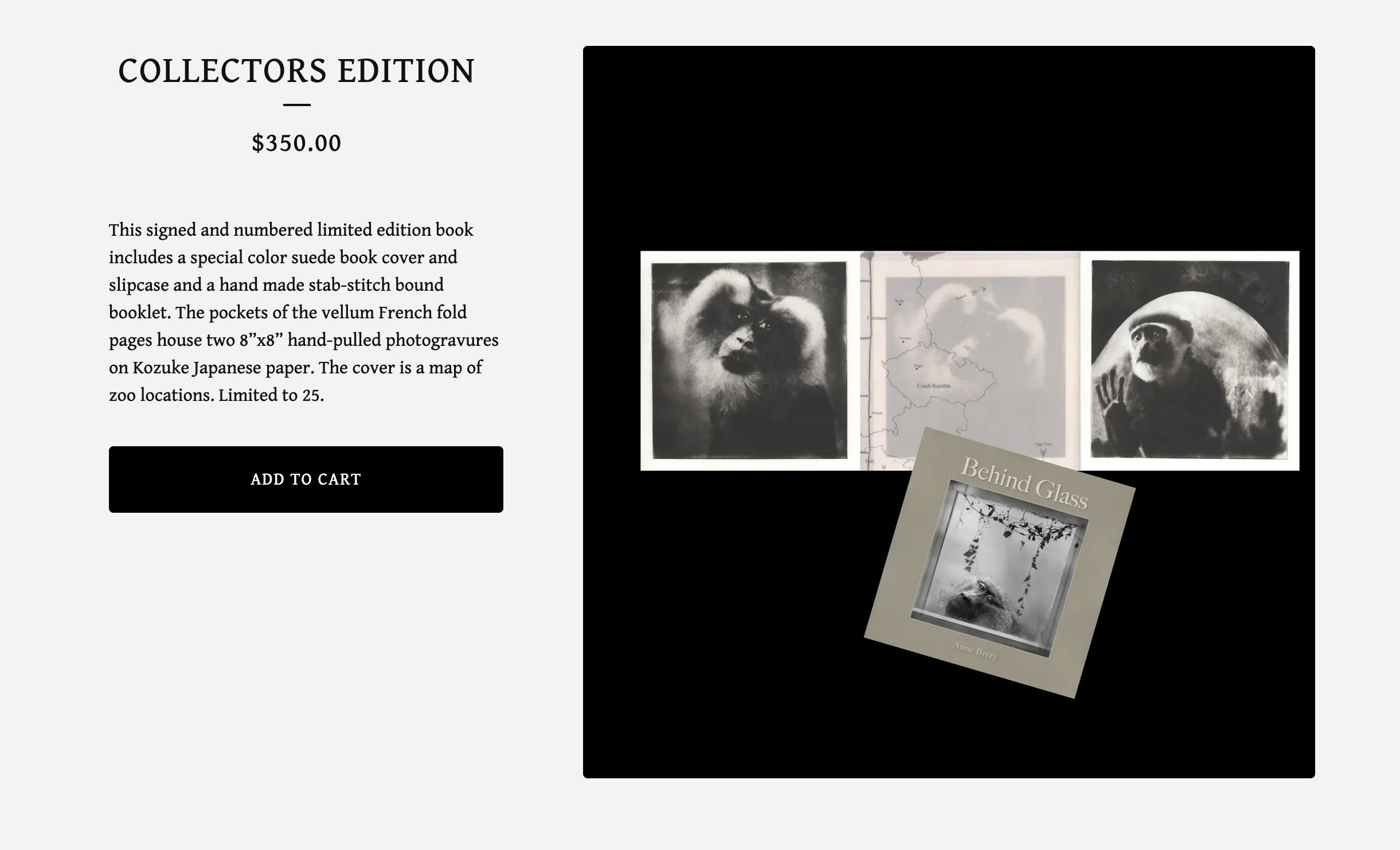 Anne Berry launched her book and limited edition Behind Glass in 2021, which features Berry's images of primates in captivity, many in refuges around the world. In this interview, Berry chats about the project and the book's creation with designer Laurie Shock, briefly about the text included from Jane Goodall, the selection of materials for the publication, and working with McWhorter as a photobook consultant.